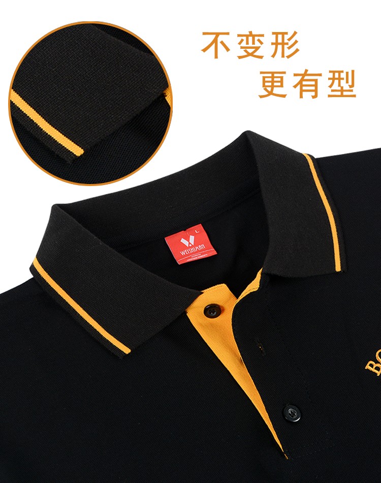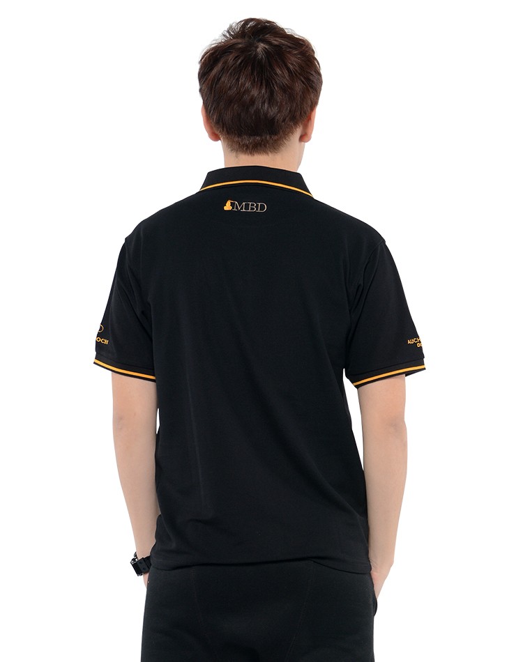 此款為辦公室員工工作服定制,采用刺繡工藝,黑色杠邊翻領設計