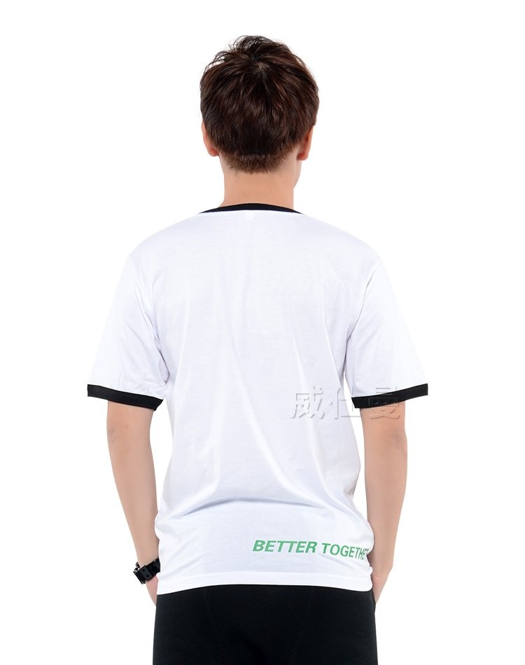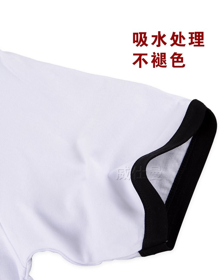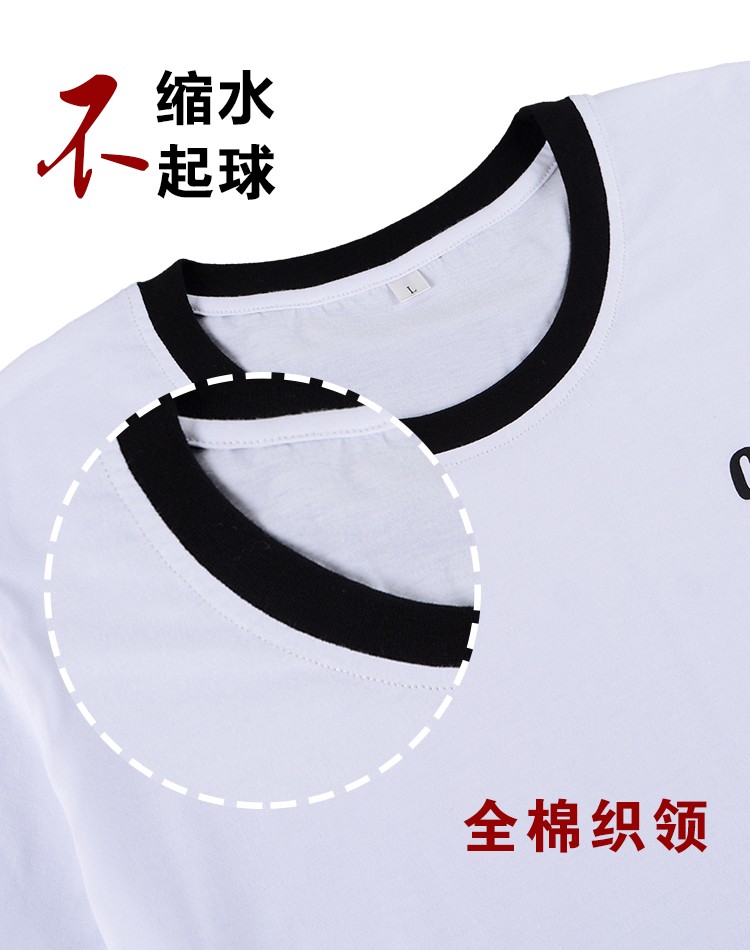 白色短袖拼色高檔純棉圓領t恤廣告衫定制